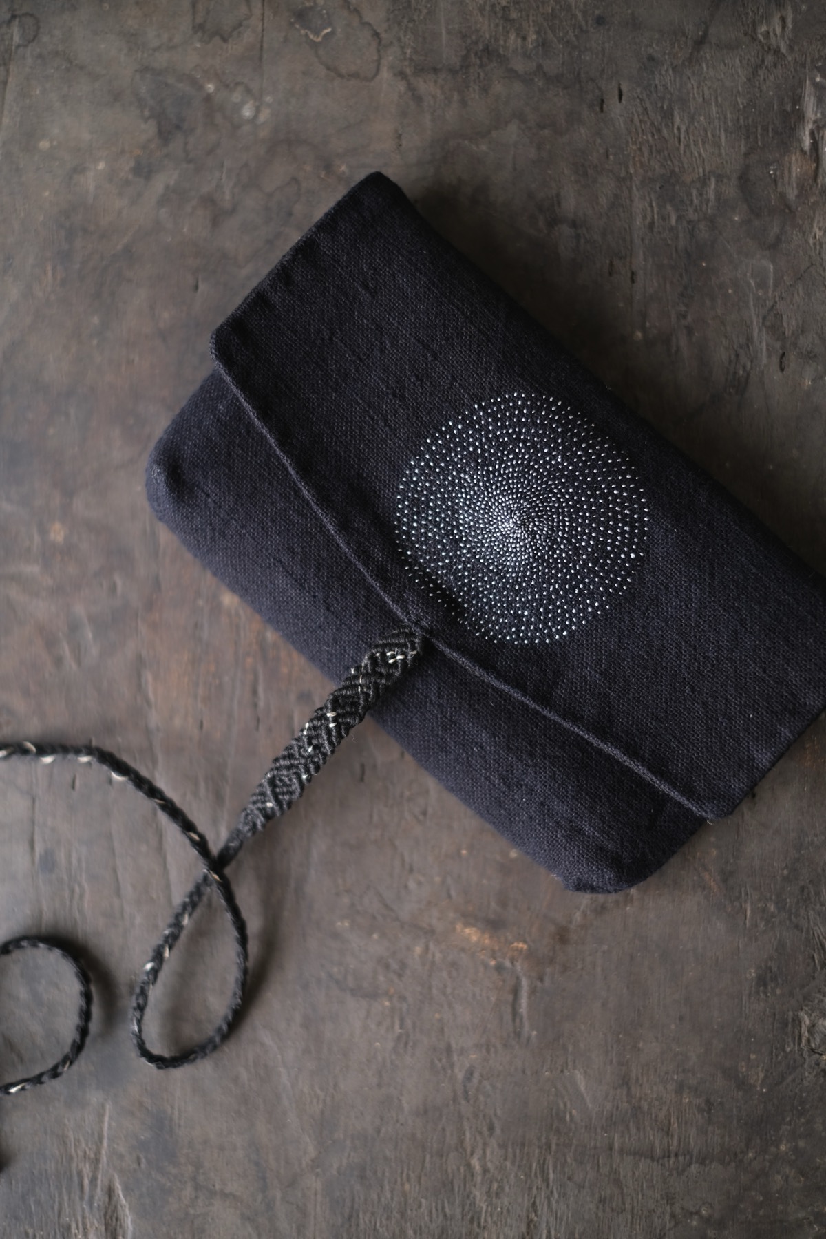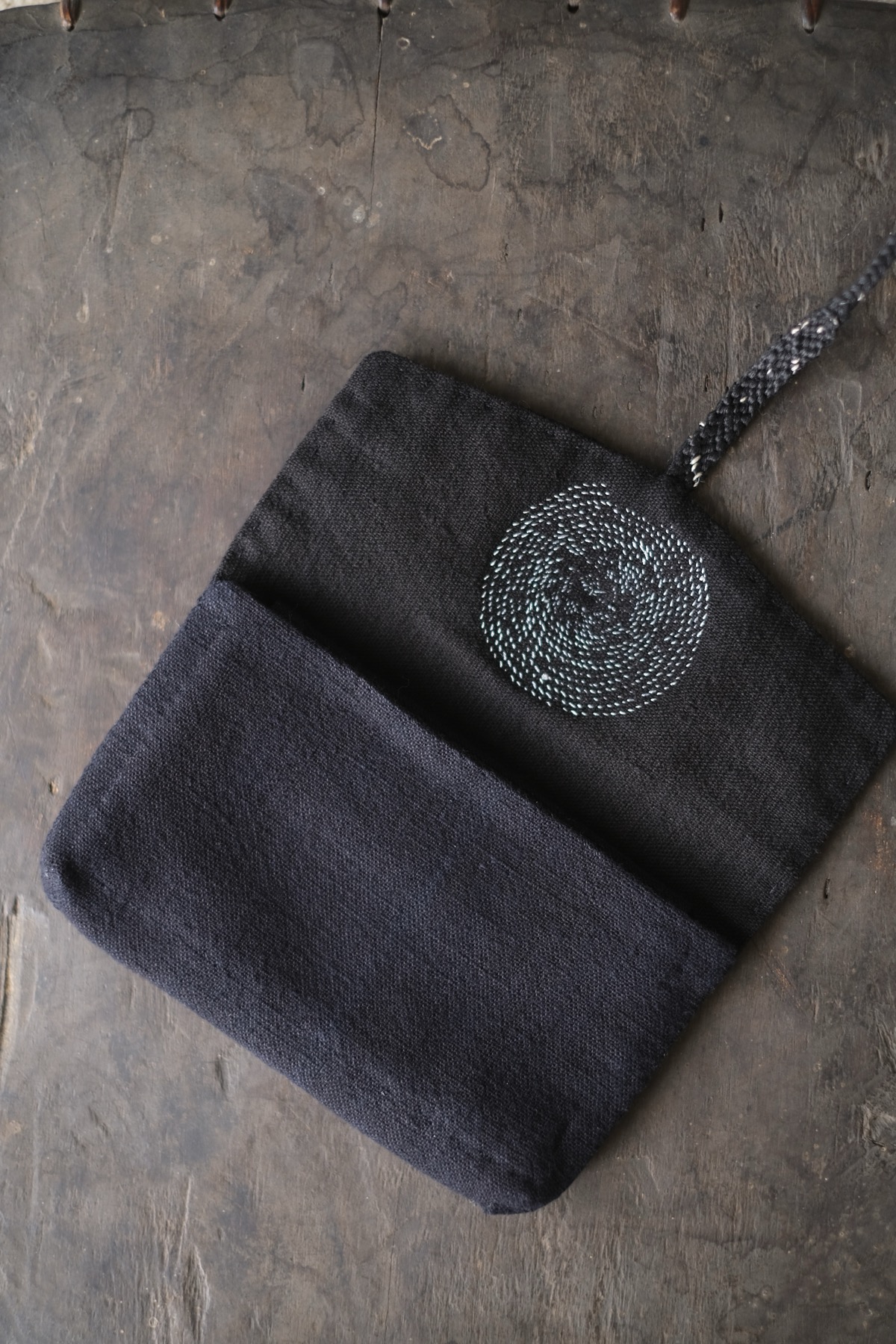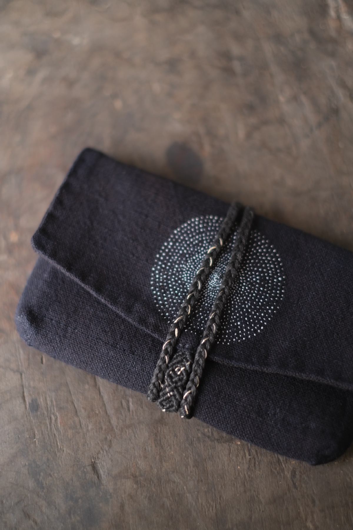 ラオス・レンテン族の黒藍染布を使用した布財布