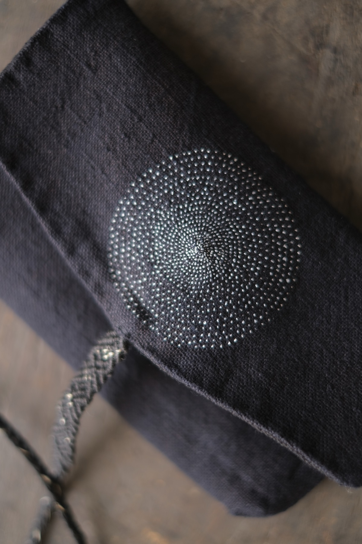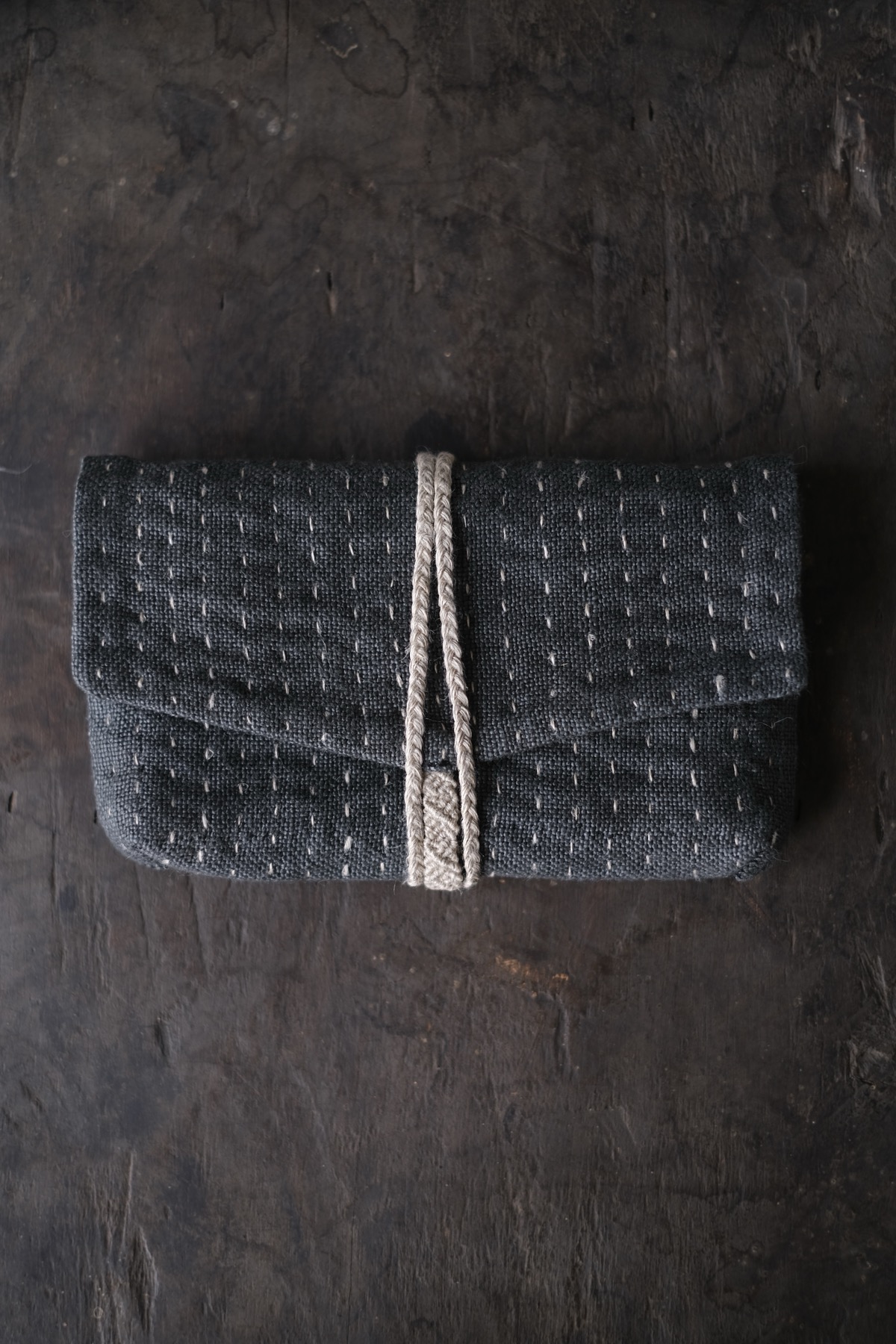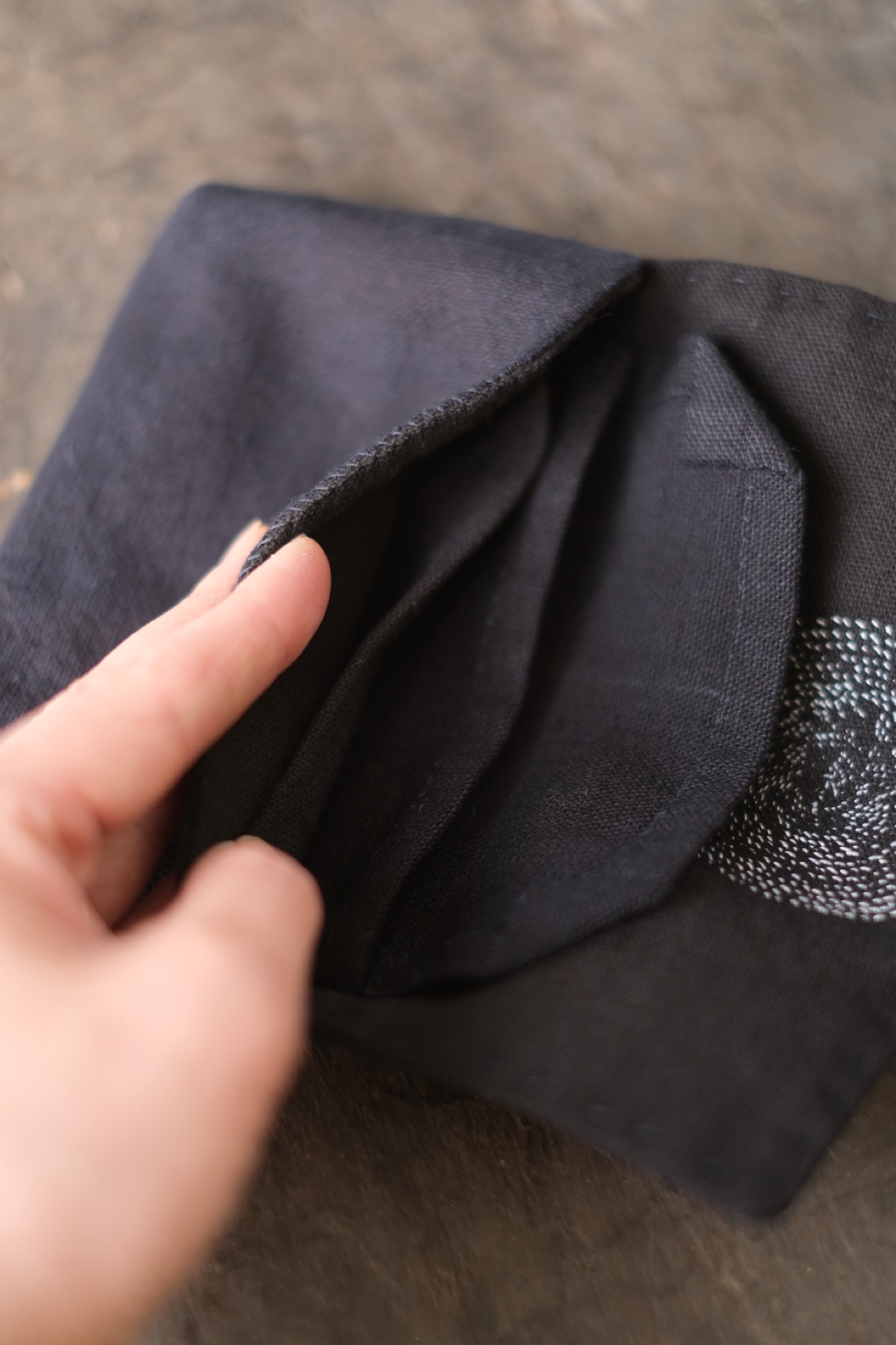 ラオス・レンテン族の黒藍染布を使用した布財布