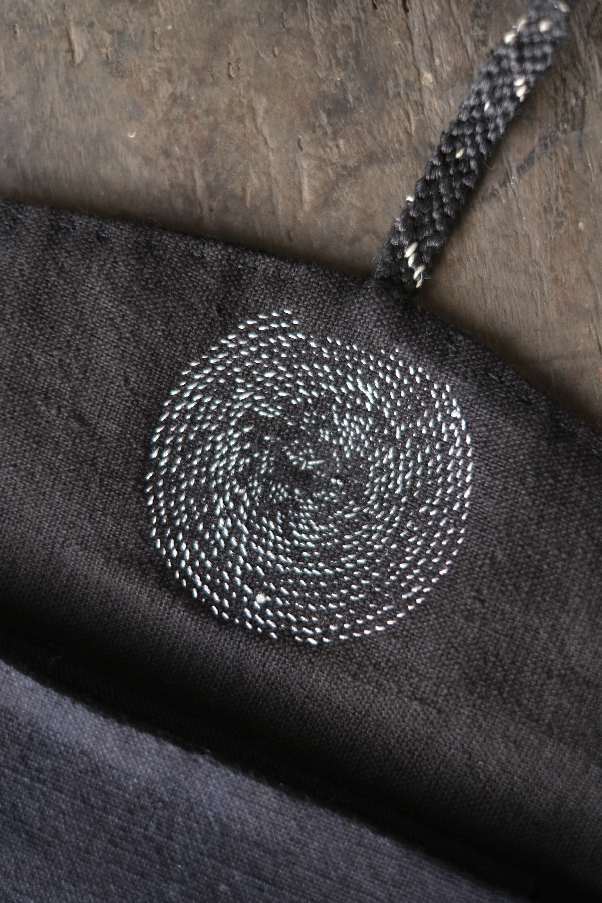 手編み留紐:麻糸、絹糸