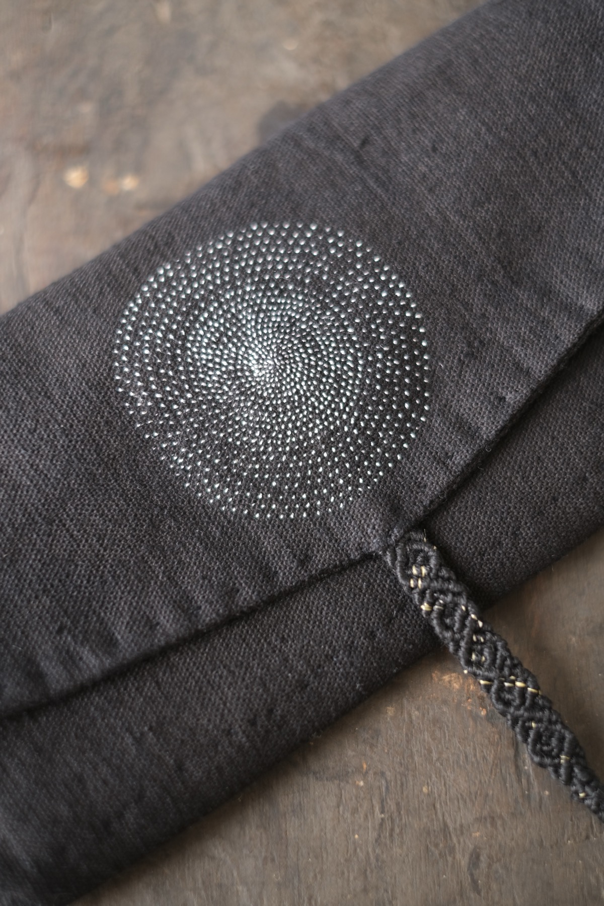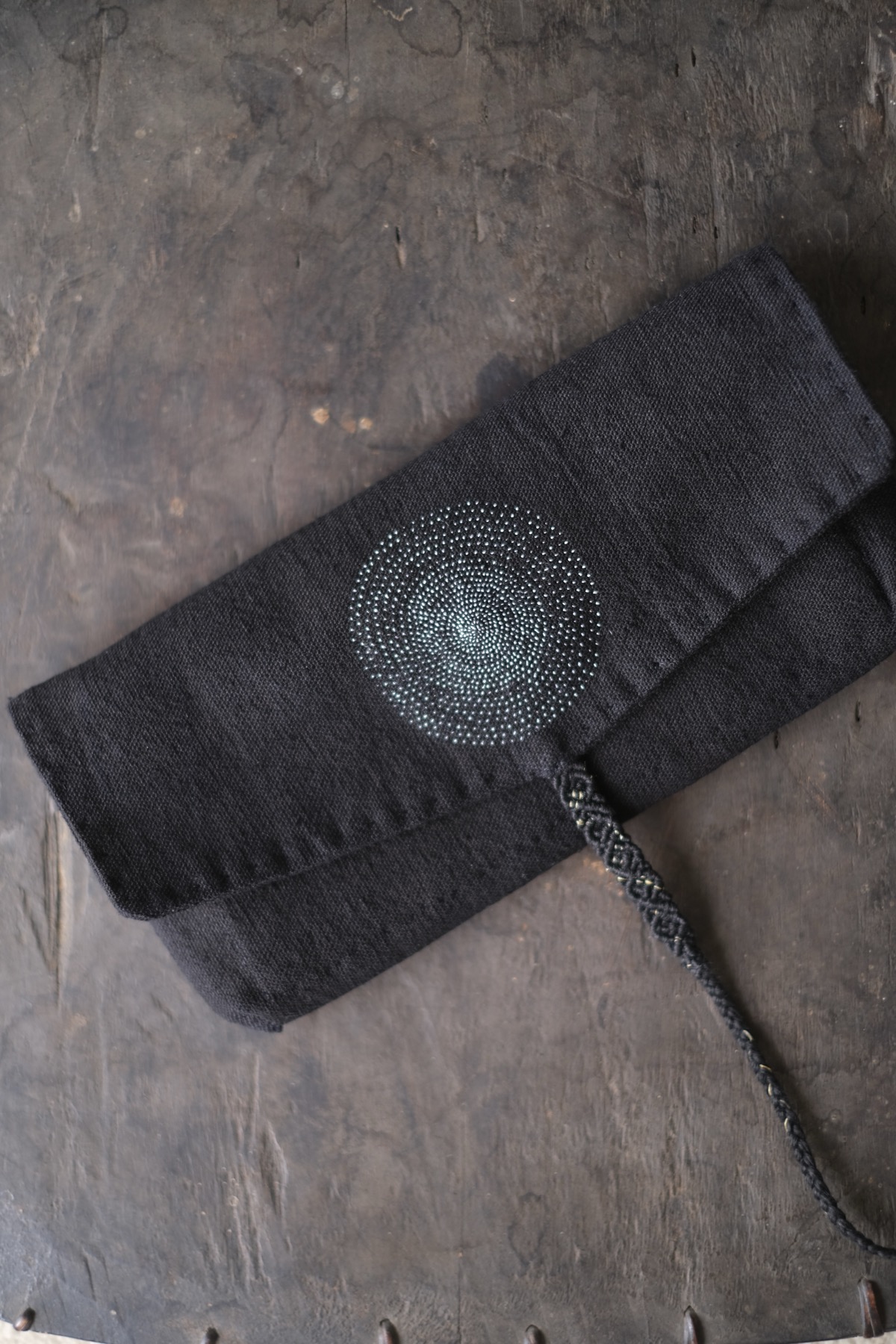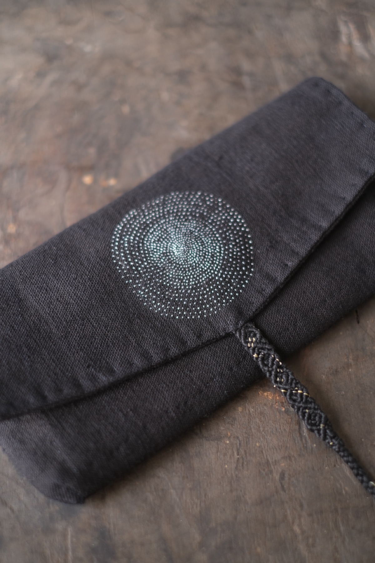 ラオス・レンテン族の黒藍染布を使用した布財布