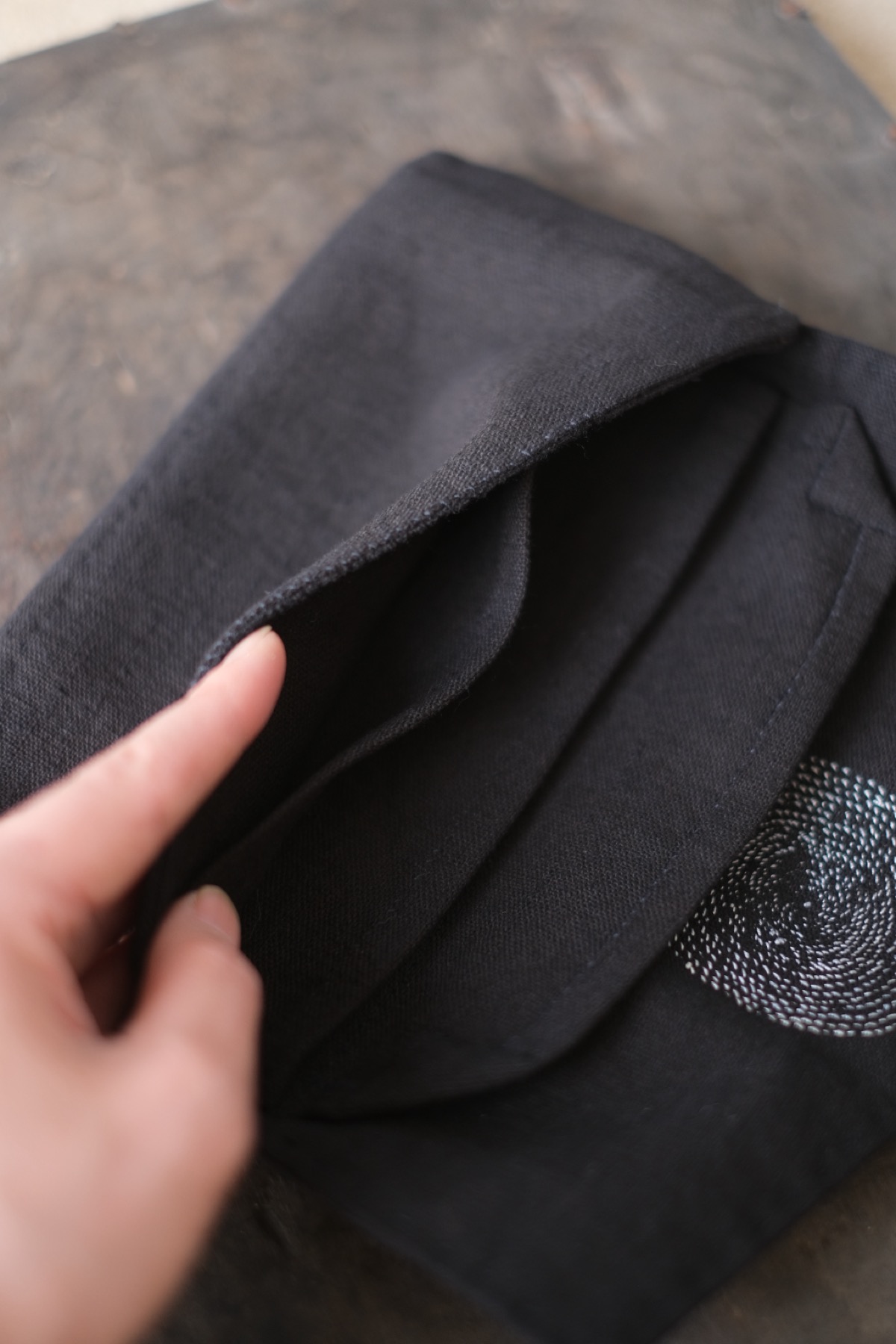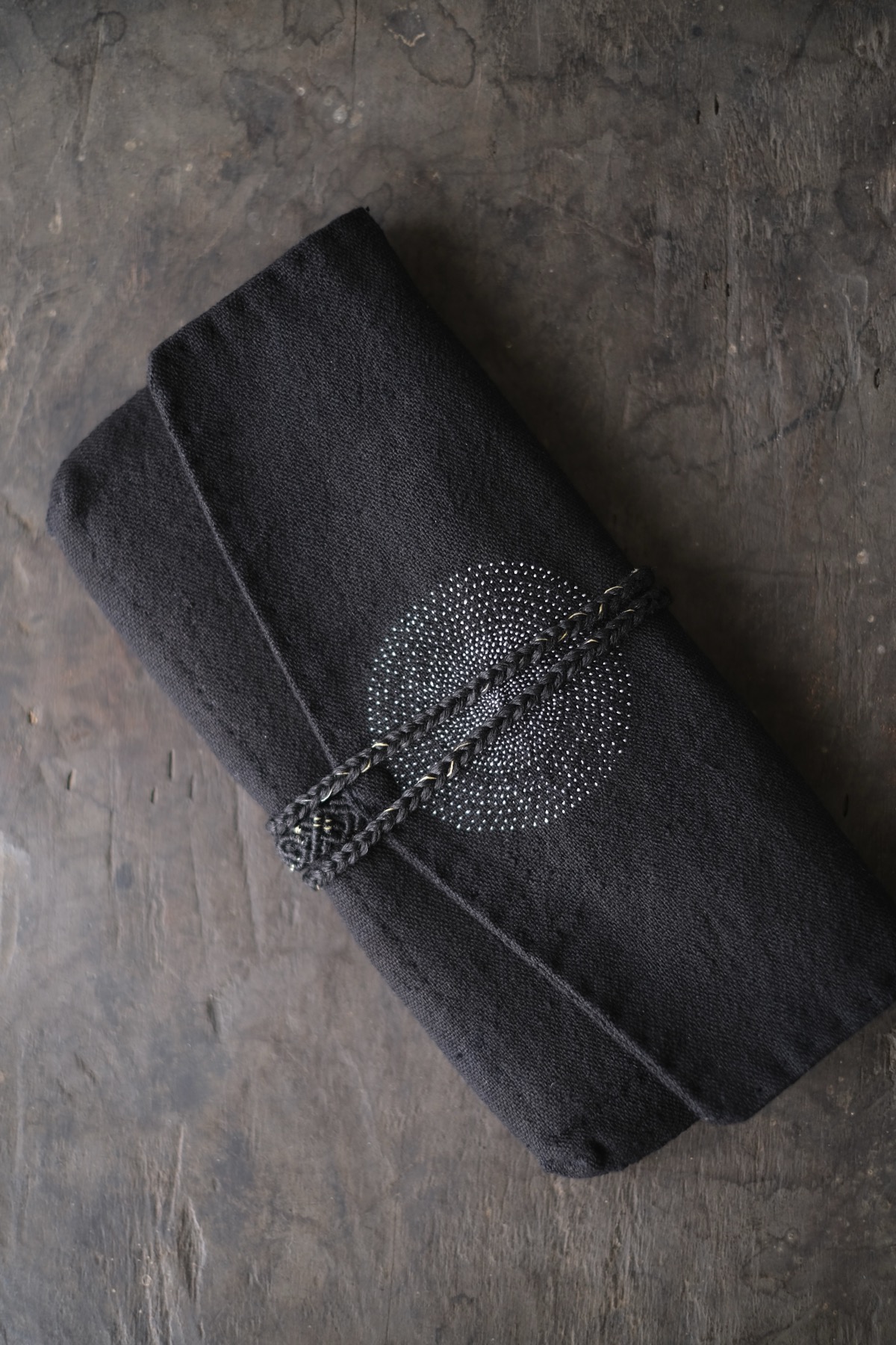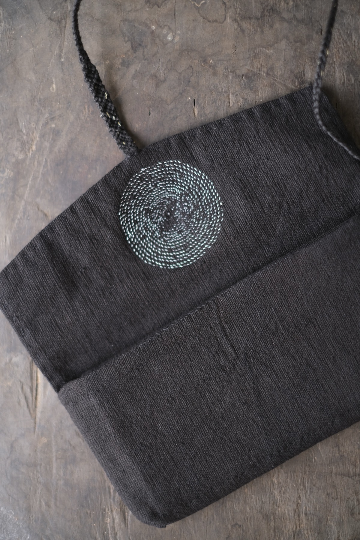 ラオス・レンテン族の黒藍染布を使用した布財布