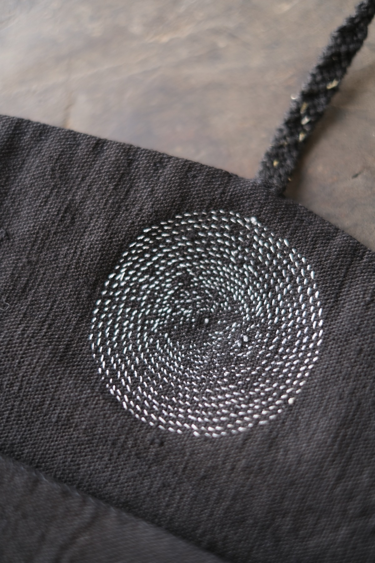手編み留紐:麻糸、絹糸