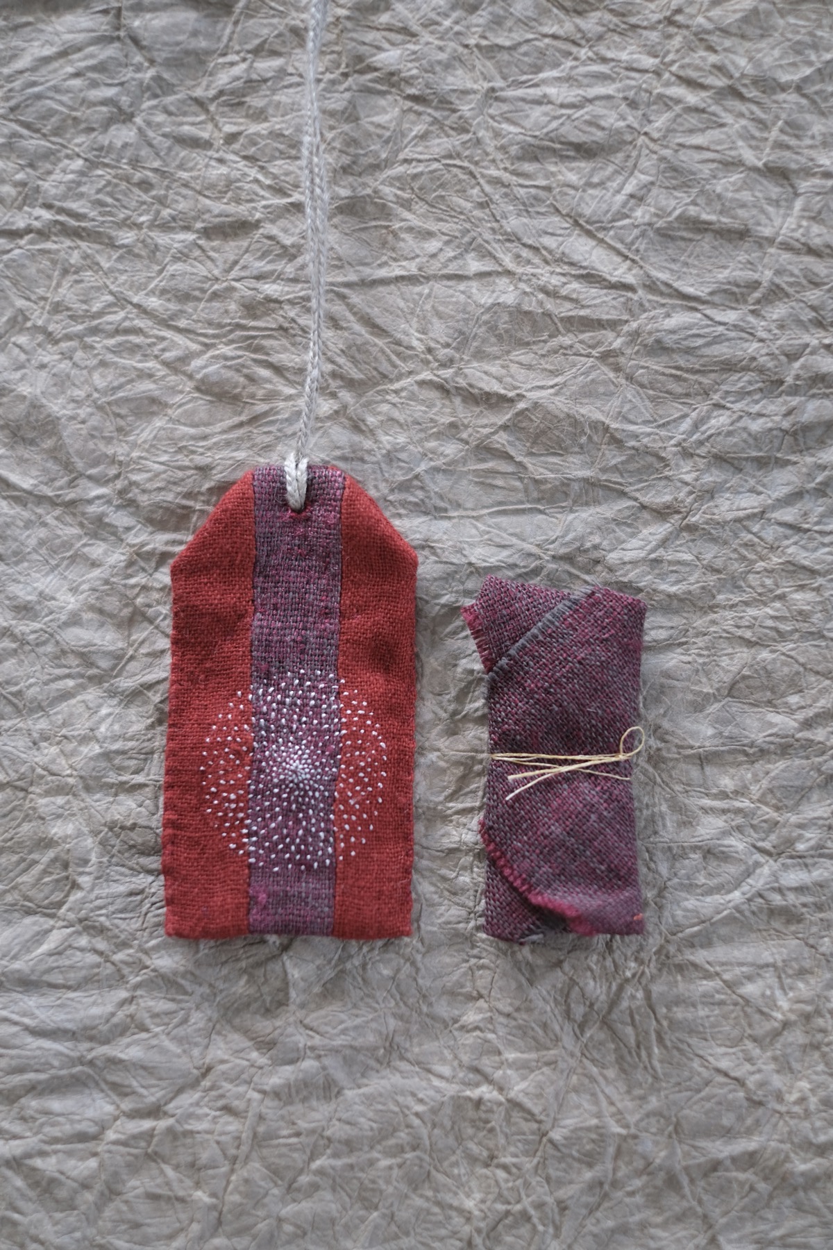 ◯素材:インド 茜染綿・ラック染絹綿/麻 手編紐